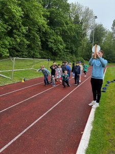 Am 17. Mai 2023 fand endlich wieder unser Sport- und Spielefest statt. Die ganze Schule traf sich bei herrlichem Wetter im Toni Turek Stadion um in den klassischen Disziplinen (Werfen, Weitsprung, Sprint und Ausdauer) anzutreten. Dazu gab es erneut verschiedene Spielestationen, die die Motorik und den Spaß an der Bewegung förderten.