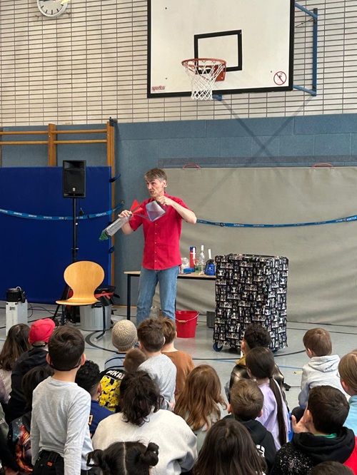 Damit die Ideen aus der Show direkt in die Tat umgesetzt werden können, gab es am Ende noch ein besonderes Geschenk: Jede Klasse erhielt ein Experimentebuch. Dieses wird in der nun folgenden Projektwoche sicher fleißig genutzt, um die Geheimnisse der Naturwissenschaften noch tiefer zu ergründen.